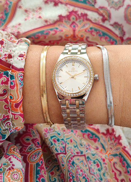 Ženski sat Bigotti Kućište:Hiruški čelik Narukvica: Hiruški čelik Veličina kućišta: 28 mm Debljina kućišta: 8 mm Staklo:Mineral kristal Narukvica : 15 mm Vodootpornost:5 ATM Garancija:2 godine